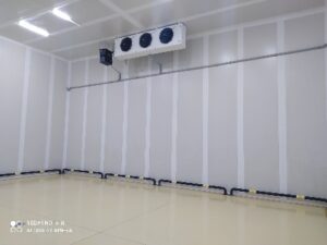 Şəkildə gördüyünüz anbardakı soyuducu sistemlər, Aqrovest üçün xüsusi olaraq meyvə və tərəvəzlərin saxlanılması məqsədilə inşa edilmişdir. Bu anbarda tətbiq edilən müasir soğutma texnologiyaları, məhsulların təzəliyini qoruyaraq uzun müddət saxlanmasına imkan verir. İstehsalçıların tələblərinə uyğun olaraq, keyfiyyətli və səmərəli həllər təqdim edilir.